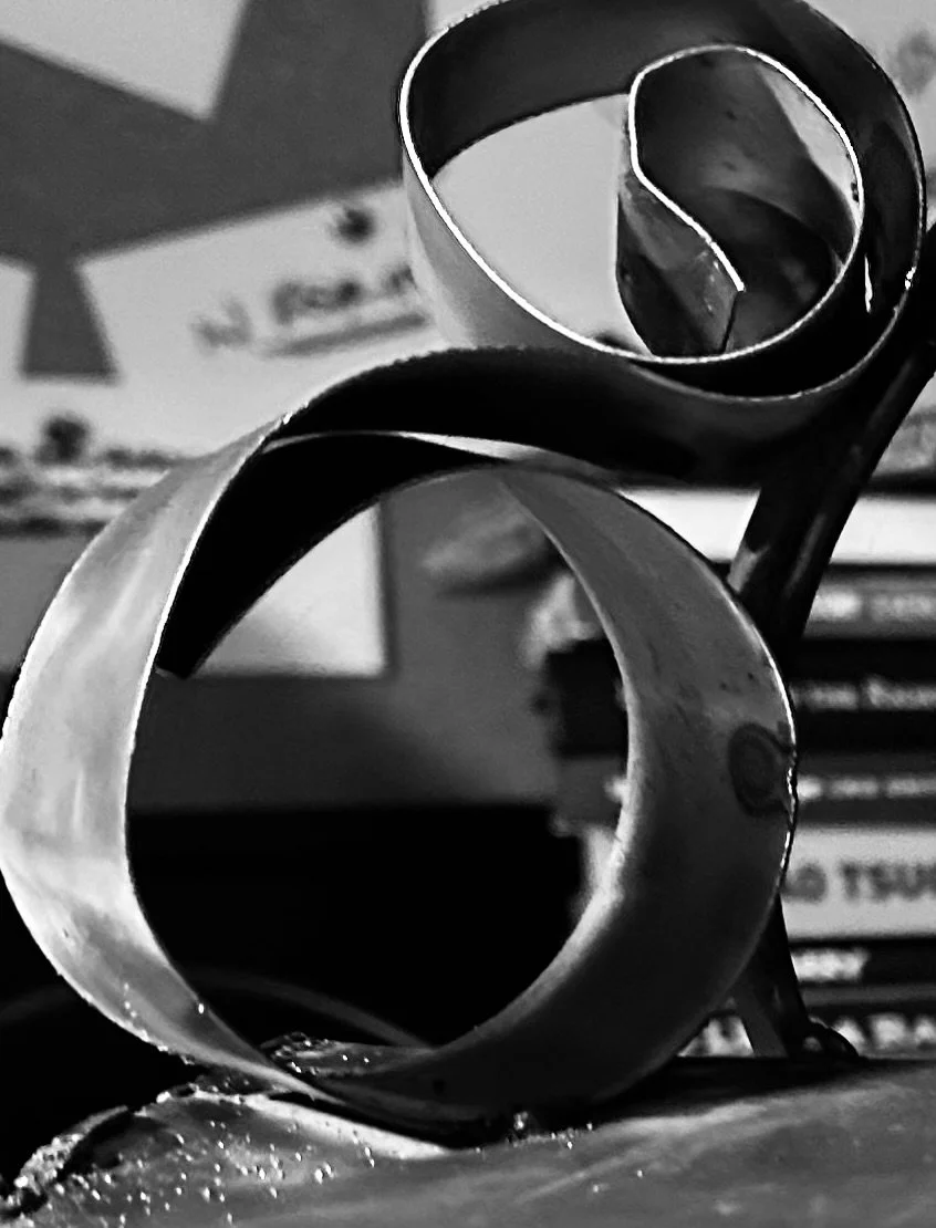 First in a new series of experiments, merging Ivan Brunetti and Lynda Barry cartooning scribble exercises with metal work. First, I take 30 seconds and draw a scribble on an index card; I then spend the next however long it takes turning it into metal sculpture. Only two rules: one, I can’t deviate too much from the scribble; and two, it has to be freestanding without any additions. Digging this first go - and will definitely do more of these.