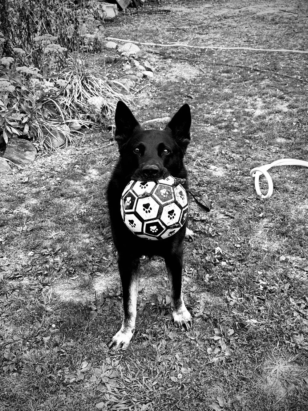 german shepherd with a ball surprise surprise