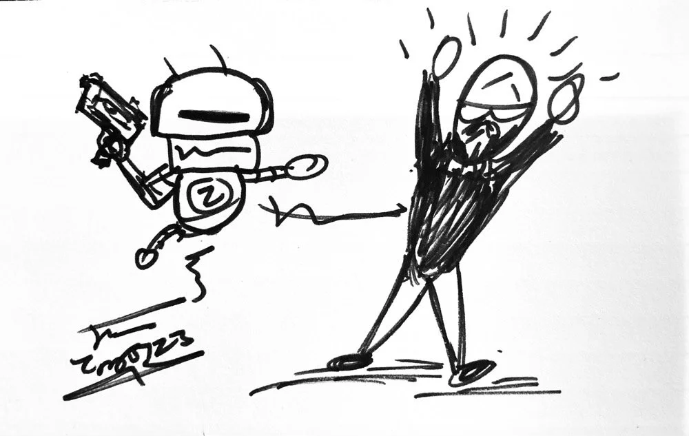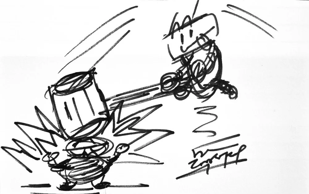 I was halfway through this latest character when I figured out how deeply I was inspired by Jason Aaron and Mahmud Asrar’s brilliant BUG WARS series. So I rolled with it and ended up with my own original denizens of Slade’s yard: Hank’s the (bug) explorer, Frank’s his (slug) steed, all birthed from old tractor parts, plenty of nuts and washers, typewriter bars, and, in Frank’s case, an old boot jack my wife gave me.