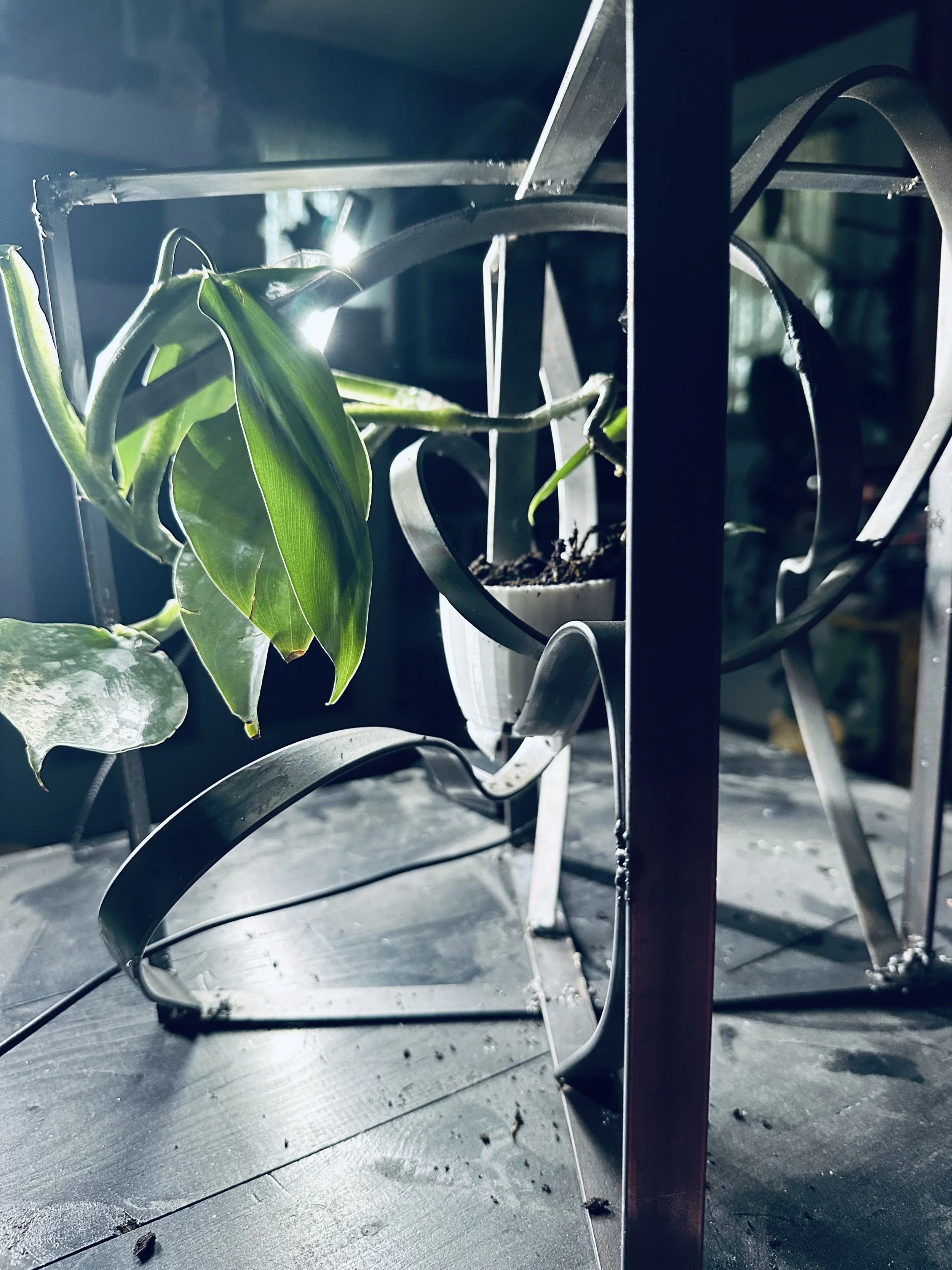 Started as a wreath, became a lamp, finished as a planter with a philodendron in a 3D-printed pot I designed and spent too many brain cells trying to figure out how to get it to float like that. Worth it.